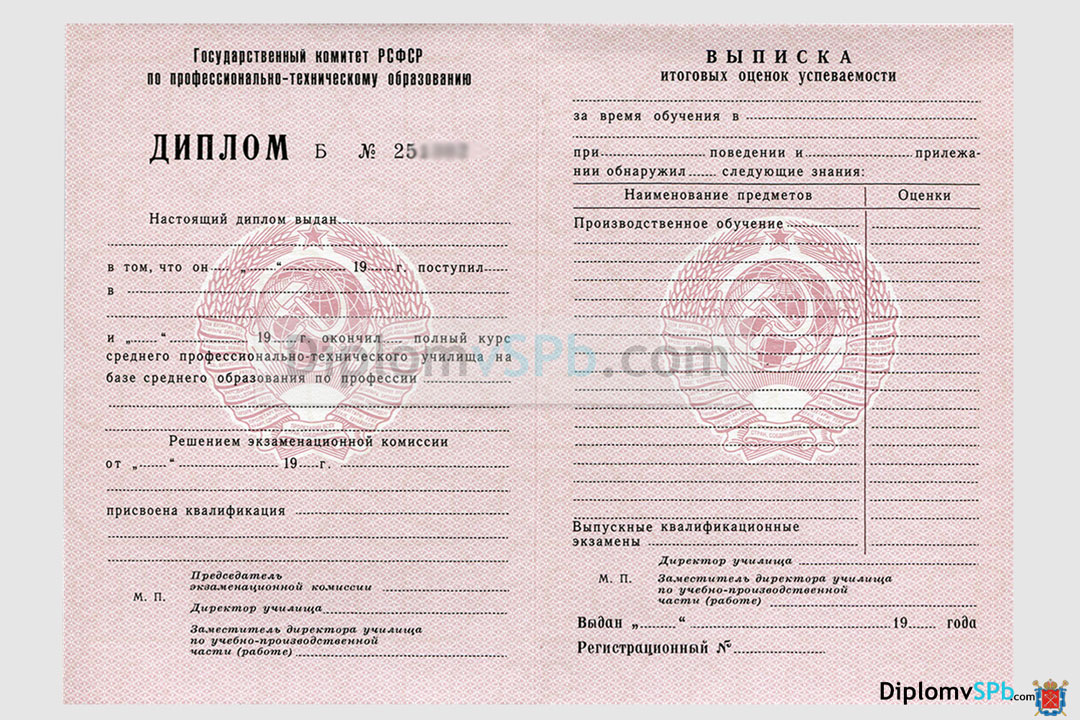 Диплом квалифицированного рабочего, служащего. Бланки СПО выдаются в ПТУ с 2014 года